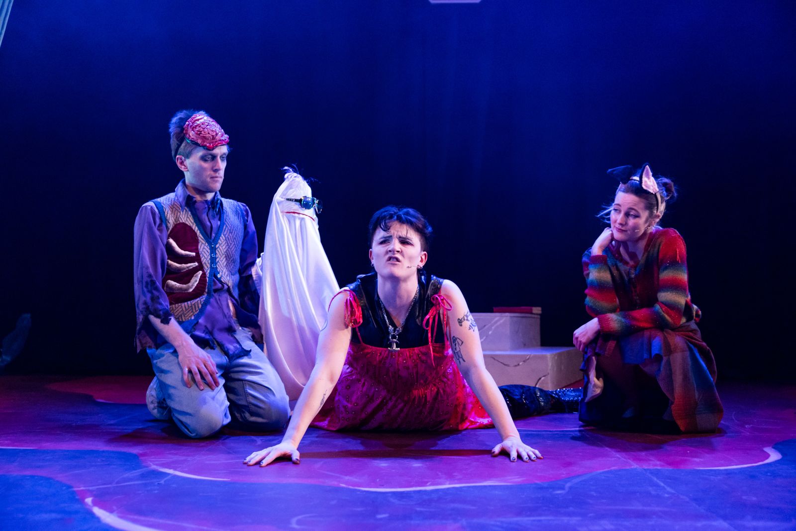 Likewise, Airlock Theatre’s Count Dykula, from the creative trio of Robbie Taylor Hunt, Eleanor Colville and Rosanna Suppa, pays homage to Disney, power ballads, WWE and fake boobs. It’s the company’s biggest, brashest stage romp yet, with the scale of their Fringe debut becoming a joke in itself because ‘gigantism, big buildings, huge sets and sweeping locations are synonymous with the States,’ observes Taylor Hunt. In the familiar US high-school setting of cheerleaders and jocks, ‘characters are established and we move through scenes quicker because the tropes are so well known,’ Colville acknowledges. Yet in Count Dykula, the cheerleaders are zombies, the jocks are werewolves and ‘America is the hegemonic mainstream’, states Suppa, who plays the titular queer British vampire, an outsider in the ‘cliquey, mega-exuberant environment’ she finds herself in.