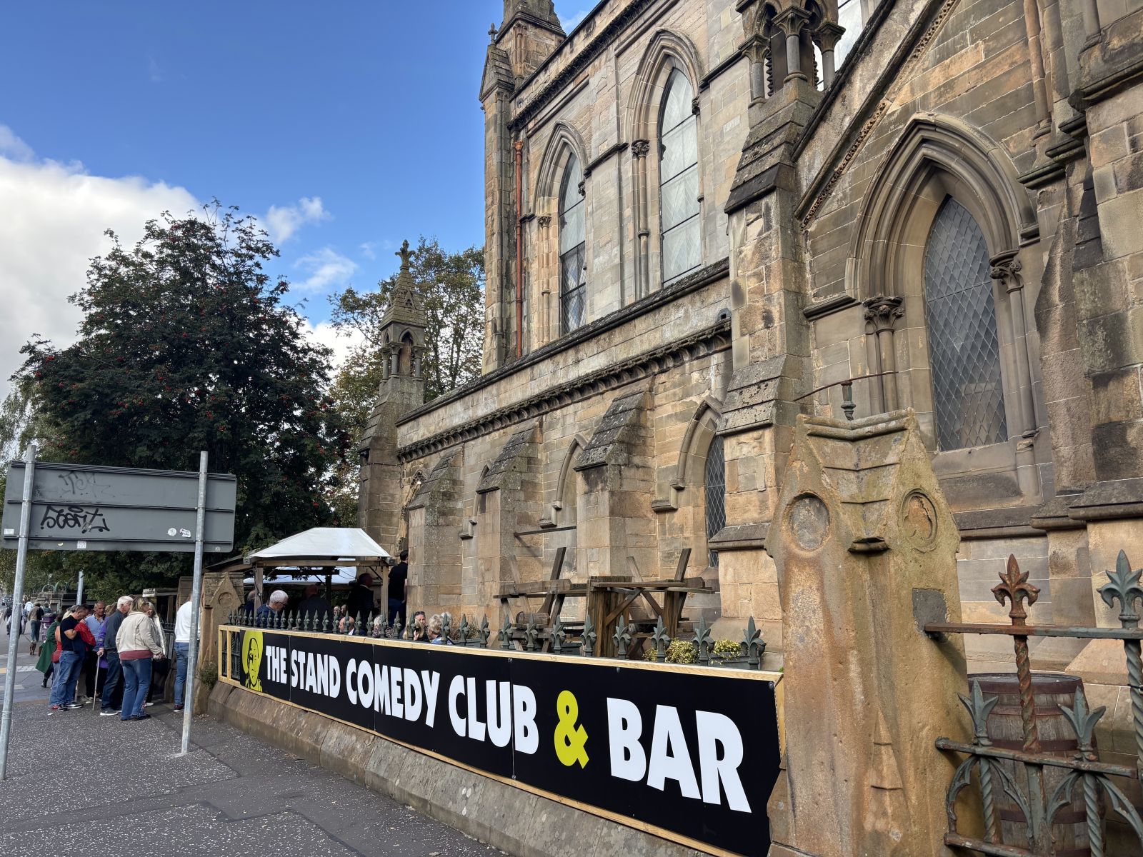 A crucifix hangs above the doorframe of The Stand’s green room, with a warning (‘Abandon hope’) for those about to take the stage. Rescued from the Glasgow comedy club’s former venue on Woodlands Road, the symbolism has acquired greater irony in its new setting in Lansdowne Church, the Victorian Gothic landmark formerly known as Websters Theatre, named after World War I casualty Alf Webster who designed its striking stained-glass windows.