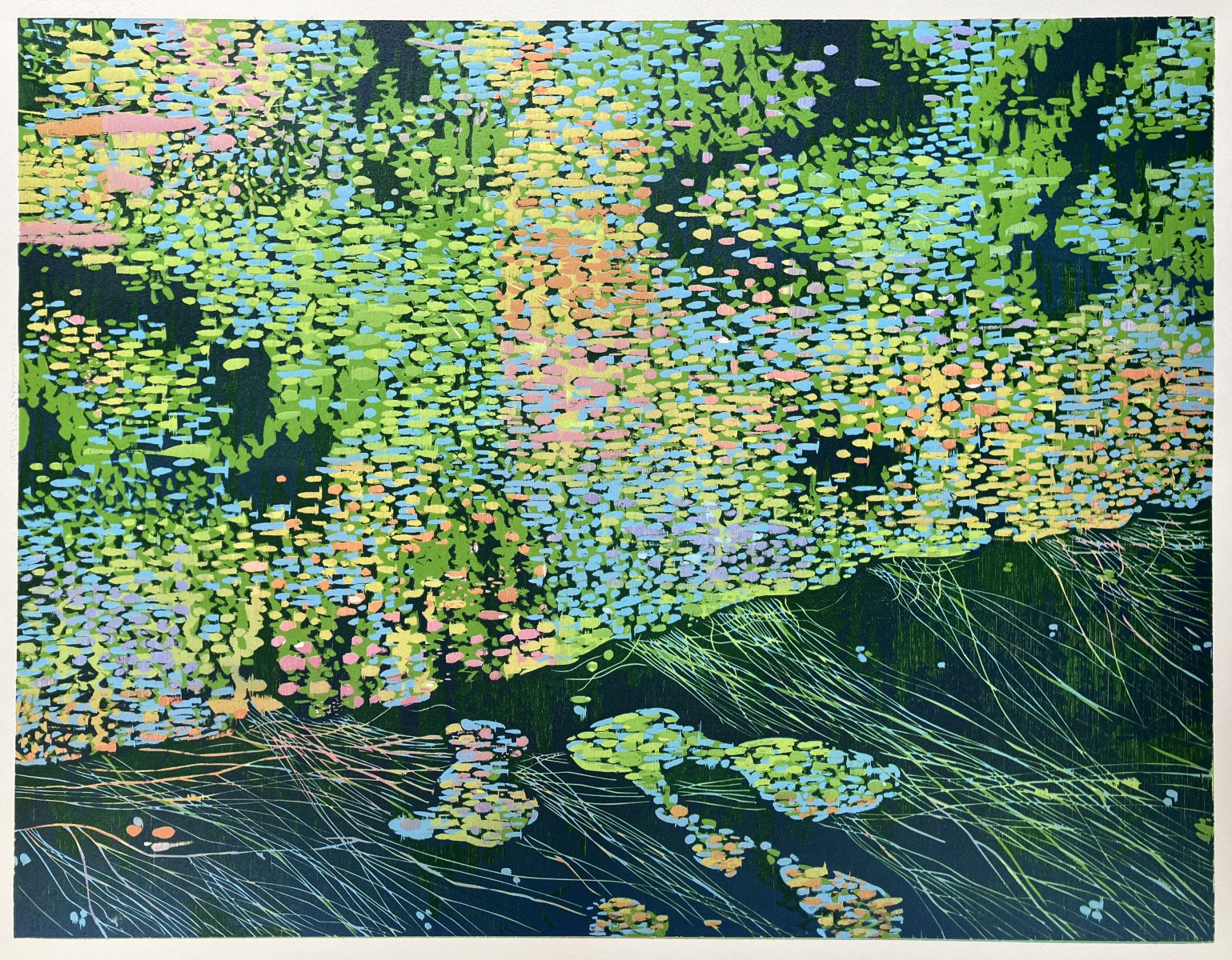 ‘January’ is a wonderful, aqueous pattern of blues and greens, scattered with pops of pastel pink rhombuses and slim orange shards. This is by Edinburgh-based printer and painter Matilda Bryce, one of 124 artists who responded to Edinburgh Printmakers’ theme, Our Shared World. Like everything else on show, it’s for sale, so ‘January’ could hang on your wall year-round. The Own Art 0% finance scheme applies here too, for anyone left skint by the calendar’s opening five-week squeeze.