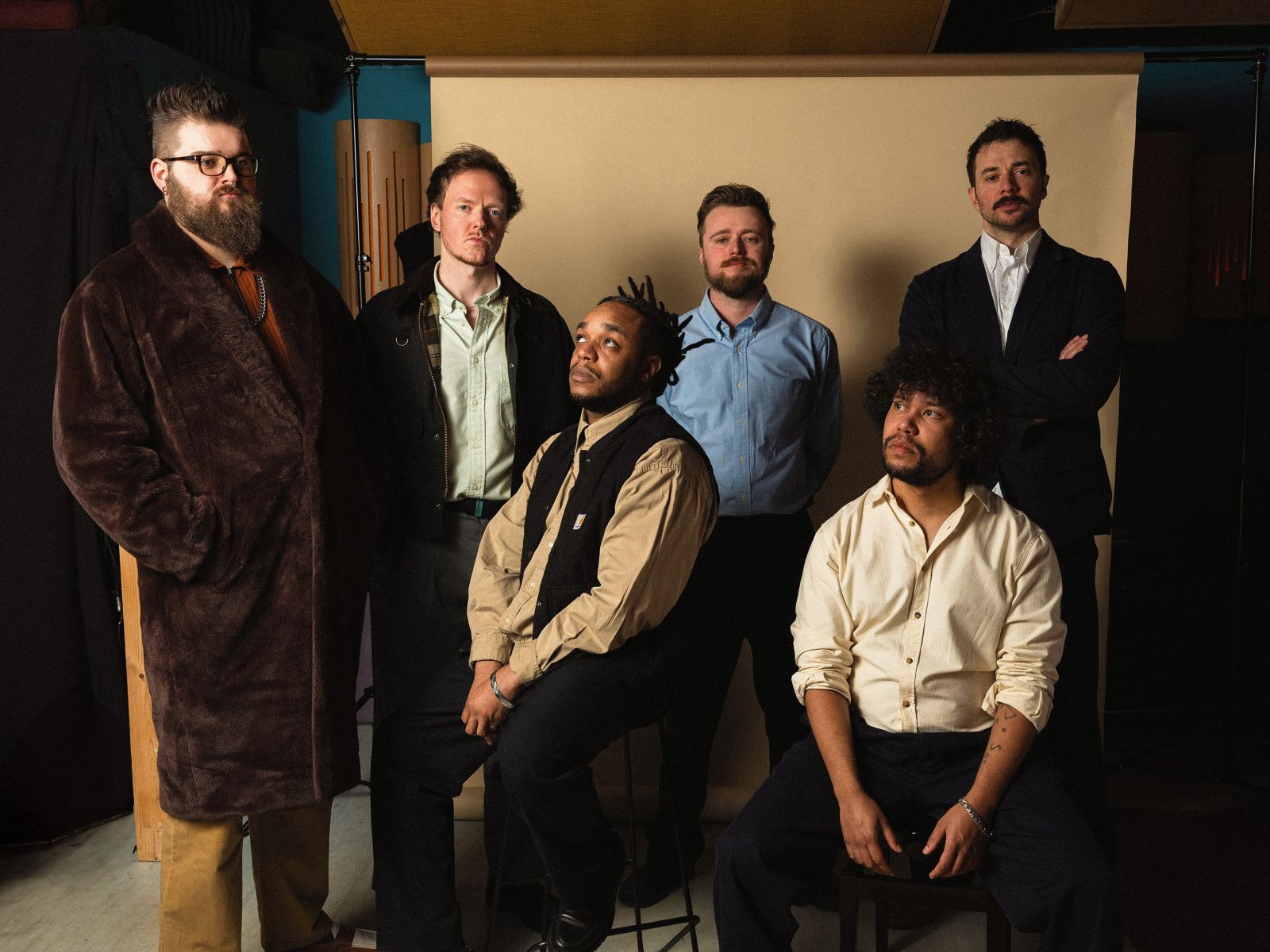 From analogue tape machines to keyboards and synths, the reformed sitting room is a treasure trove of second-hand audio equipment. ‘It’s usually a bit of a mess,’ admits Copeland. ‘But that actually makes people feel comfortable.’ Frost interjects: ‘It lowers the stakes!’ Copeland proceeds to play one of the band’s unreleased instrumentals over his speakers, a lavish, textured jazz beat which serves as a reminder of just how solid the band are, instantly transporting all three of us away from a rainy midweek night in Paisley. It’s hard to imagine six people squeezing into this intimate studio space and the noise that must reverberate around the stairwell, though Copeland appears unfazed: ‘I think if we made bad music the neighbours would tell us to shut up much faster.’