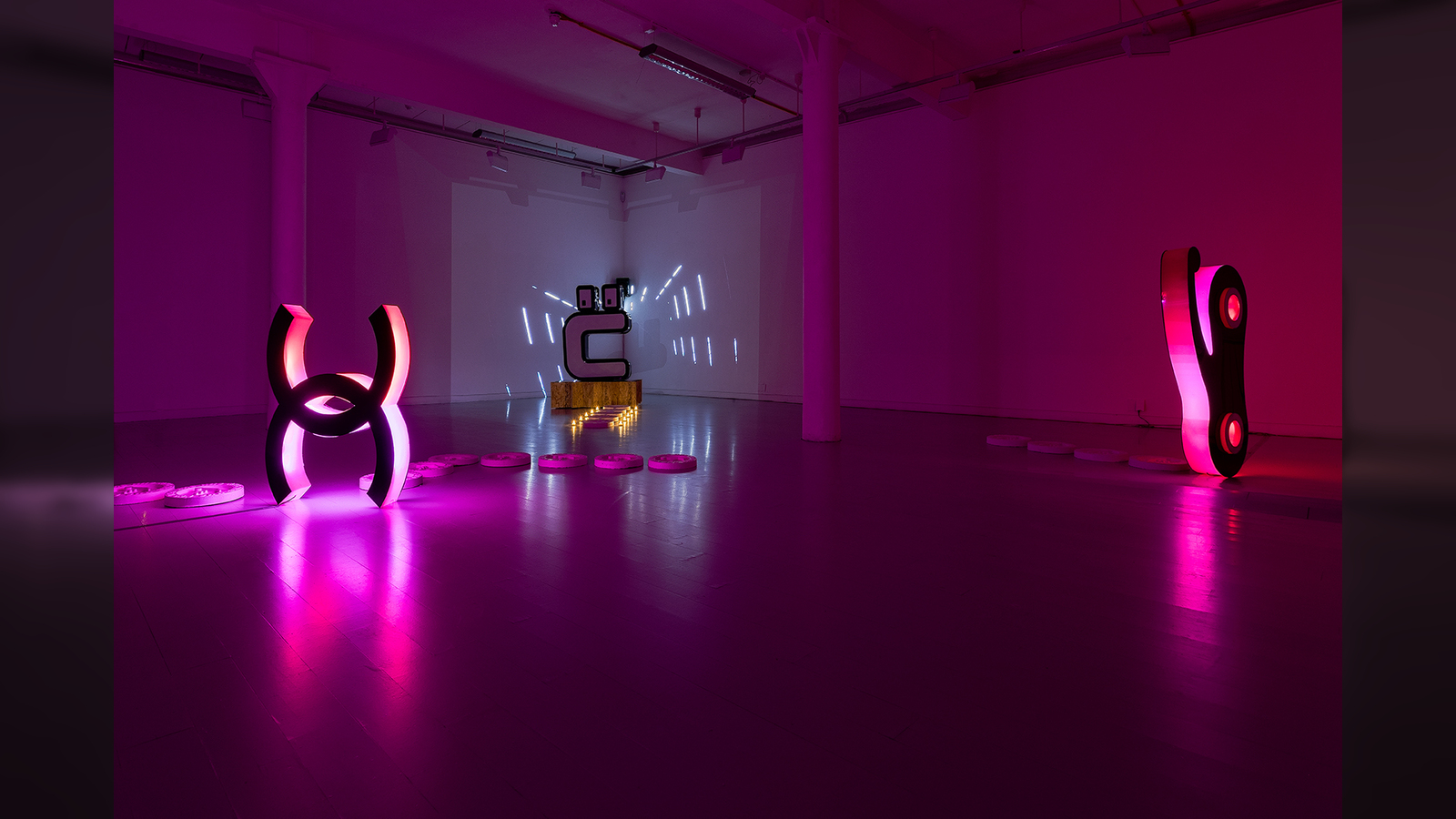 Edinburgh’s Fruitmarket is the setting for Jamie Cooper: LEVELLING UP (until Sunday 18 January) an immersive installation that includes newly created sound and film pieces, including plastic sculptures and illuminated signs.