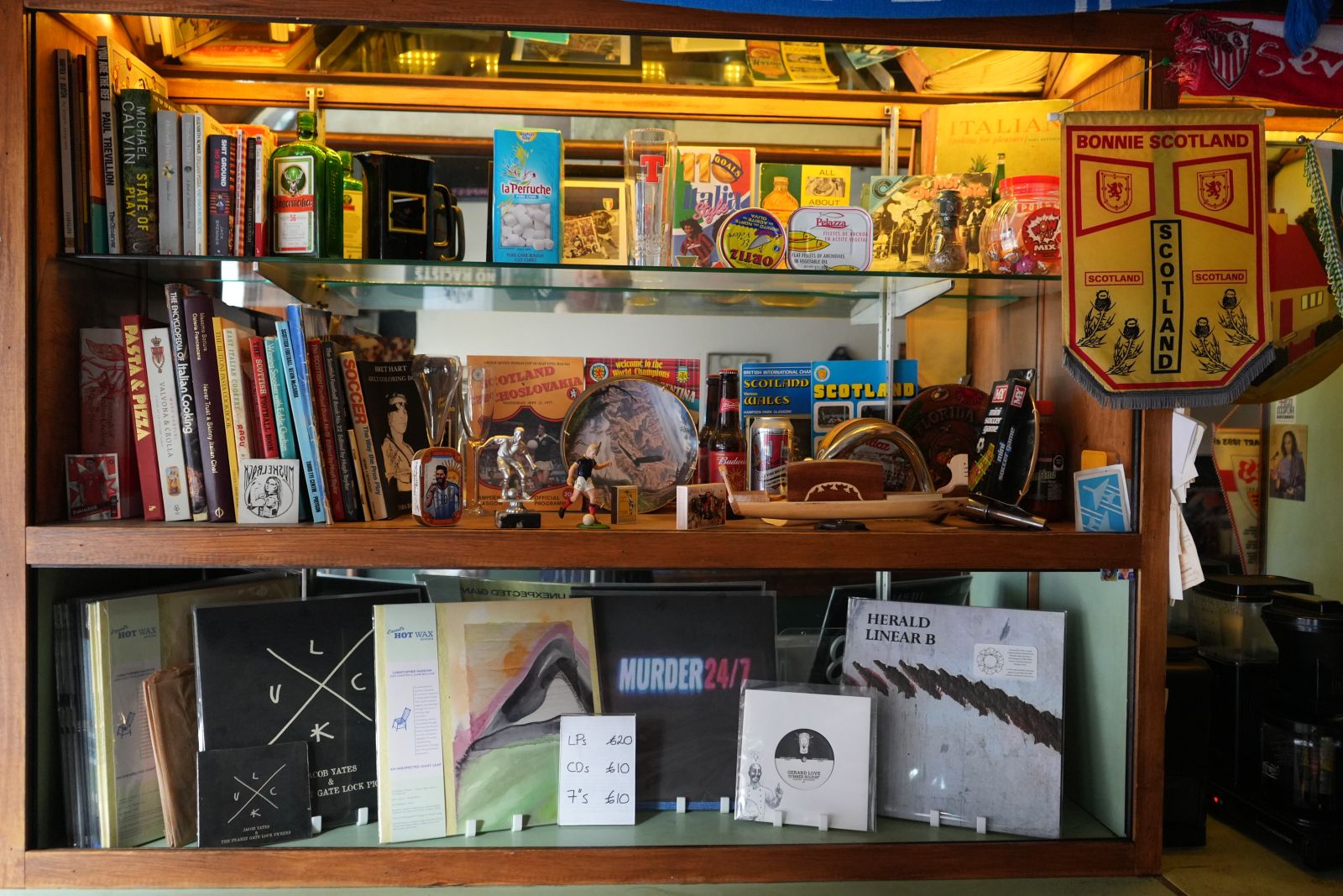 Imagining McCaffrey working on these releases while pizza dough is thrown around and hungry customers wait outside may be tempting, but a corner of his home living room is Errol’s Hot Wax HQ. ‘I do love the pizza-shop association,’ he says. ‘But this is a labour of love, not my full-time job. So keeping the costs down allows me to put more albums out.’ Meanwhile an original wooden unit behind the bar at Errol’s Hot Pizza proudly displays the label’s paraphernalia, including all of their releases to date. ‘Euan owns Errol’s and his partners John and Claire are really nice people and great friends. There’s definitely potential to do some releases together in the future. But for now I’m happy in the little corner of my living room.’
