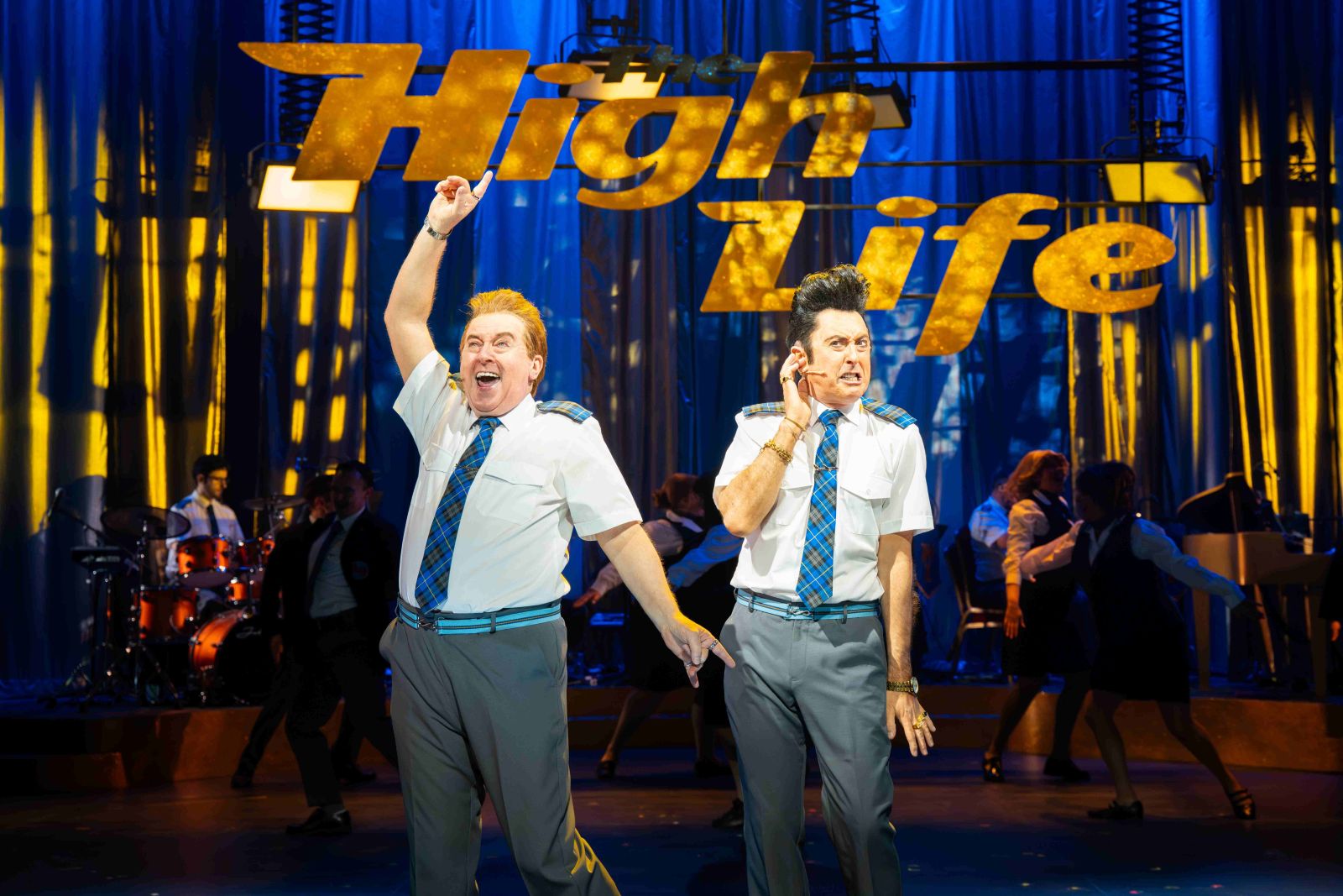 The journey to victory is far from straightforward, however, with the flight path veering perilously close to the infamous ‘Lower Largo Triangle’. And it’s here that The High Life gets a wee bitty silly, with a visit to the guest house that time forgot bringing echoes of Brigadoon and The Rocky Horror Show. The fun never stops but the clever lines so prevalent in act one lose their sharpness in a sea of ginger-haired chaos. But we’re never far from a big show number, keeping the audience buoyed throughout, and sending us scurrying post-show to find an original cast recording that sadly has yet to exist. The strong ensemble cast support the leads with wit and energy, a particular shout-out going to Louise McCarthy as Steve’s hilarious long-lost love Heather, and the hugely versatile Kyle Gardiner as Mylie the intern.